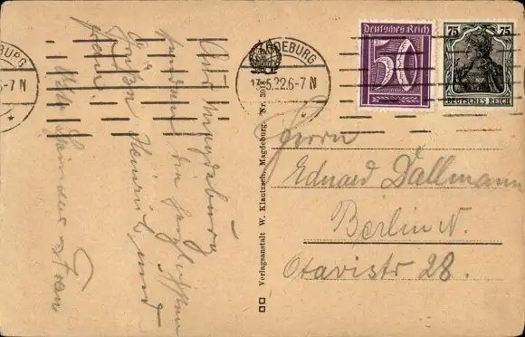 Zustand, siehe Scan, gelaufen, 1922 - ca 14 cm X 9 cm