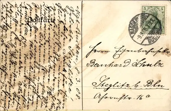 Zustand, siehe Scan, gelaufen, 1908 - ca 14 cm X 9 cm