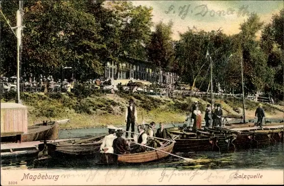 Ak Magdeburg an der Elbe, Salzquelle, Ruderboot