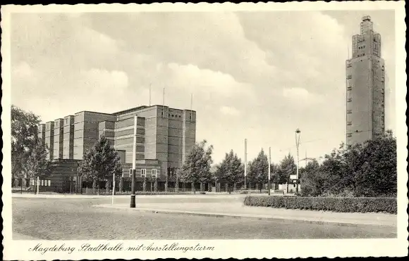 Ak Magdeburg an der Elbe, Stadthalle, Ausstellungsturm