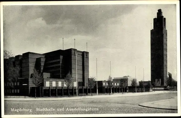 Ak Magdeburg an der Elbe, Stadthalle mit Ausstellungsturm