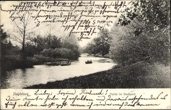 Ak Magdeburg an der Elbe, Stadtpark, Ruderboote