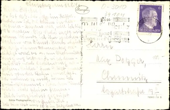 Zustand, siehe Scan, gelaufen, 1943 - ca 14 cm X 9 cm