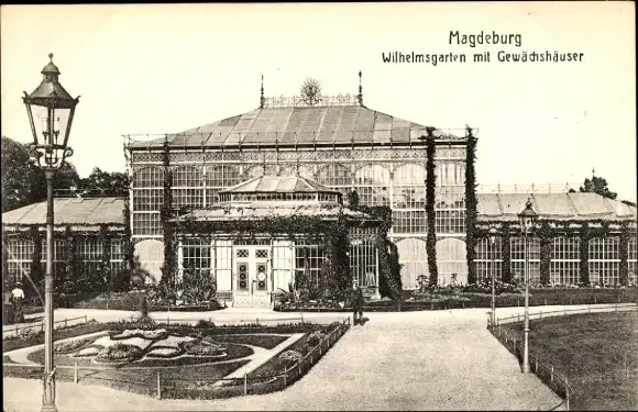 Ak Magdeburg an der Elbe, Wilhelmsgarten, Gewächshäuser