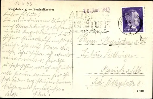 Ak Magdeburg an der Elbe, Zentraltheater, Denkmal, Außenansicht