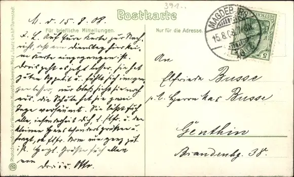 Zustand, siehe Scan, gelaufen, 1908 - ca 14 cm X 9 cm