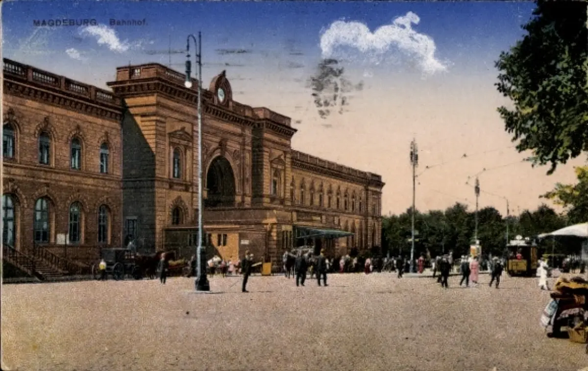 Ak Magdeburg in Sachsen Anhalt, Bahnhof, Straßenseite