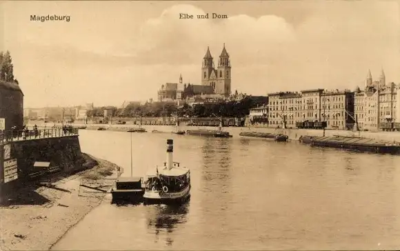 Ak Magdeburg in Sachsen Anhalt, Elbe, Dampfboot, Dom