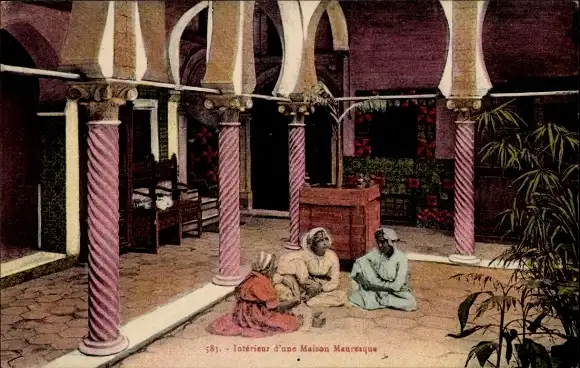 Ak Maghreb, Araberinnen in Trachten, Wohnhaus