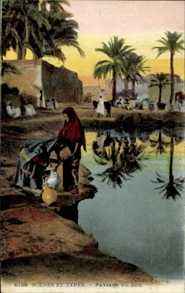 Ak Maghreb, Araberinnen schöpfen Wasser