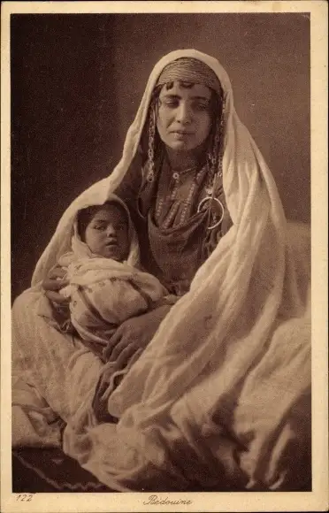 Ak Maghreb, Bédouine et son enfant, arabische Mutter mit Kind