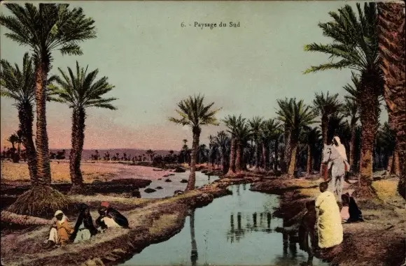 Ak Maghreb, Flusspartie, Palmen, Mann zu Pferde