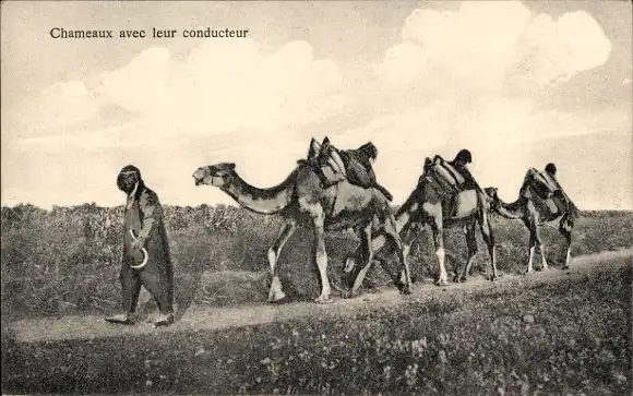 Ak Maghreb, Kamele mit ihrem Fahrer