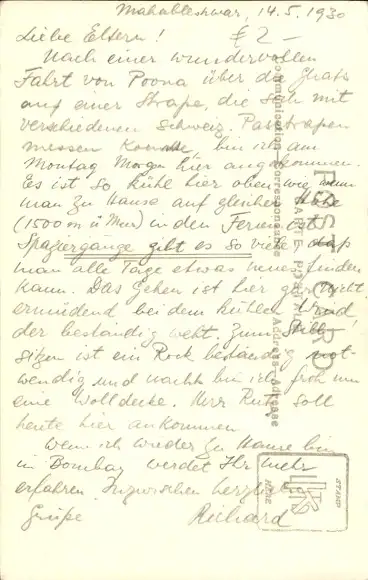 Zustand, siehe Scan, ungelaufen, 1930 - ca 14 cm X 9 cm