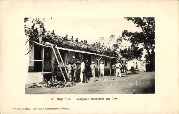 Ak Mahajanga Majunga Madagaskar, Senegalese, der eine Kiste bedeckt