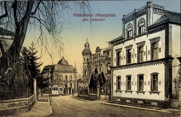 Ak Maikammer in der Pfalz, Am Lindeneck, Straßenbahn, Gebäude