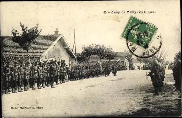 Ak Mailly le Camp Aube, Camp, Au Drapeau