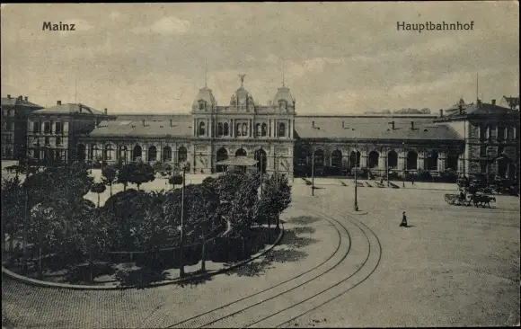 Ak Mainz, Hauptbahnhof, Straßenbahnschienen