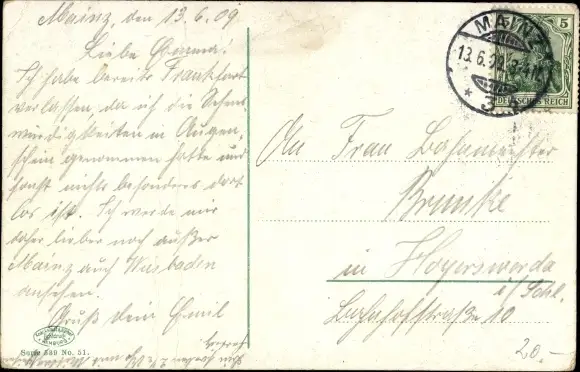 Zustand, siehe Scan, gelaufen, 1909 - ca 14 cm X 9 cm