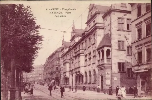 Ak Mainz Rheinland Pfalz, Postgebäude, Handlung, Straßenszene