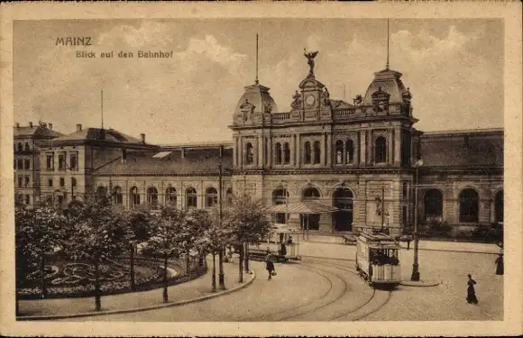 Ak Mainz am Rhein, Bahnhof, Straßenbahn