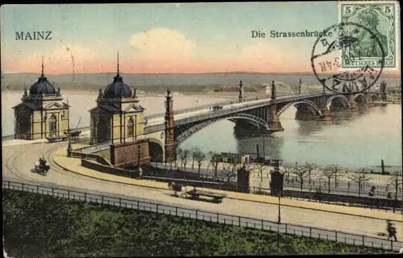 Ak Mainz am Rhein, Die Straßenbrücke, Panorama