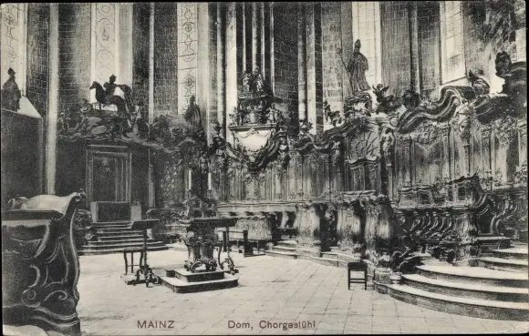Ak Mainz am Rhein, Dom, Innenansicht, Chorgestühl