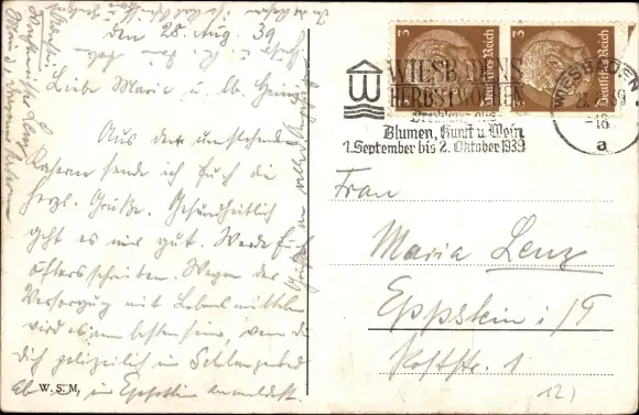 Zustand, siehe Scan, gelaufen, 1939 - ca 14 cm X 9 cm