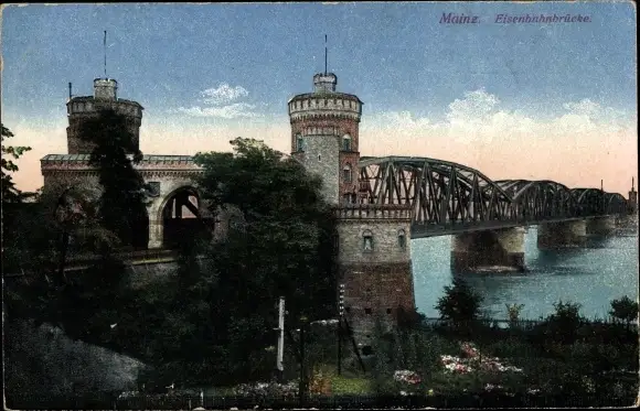 Ak Mainz am Rhein, Eisenbahnbrücke
