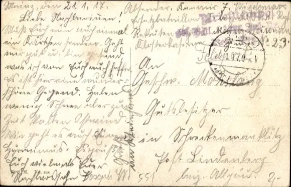 Zustand, siehe Scan, gelaufen, 1917 - ca 14 cm X 9 cm