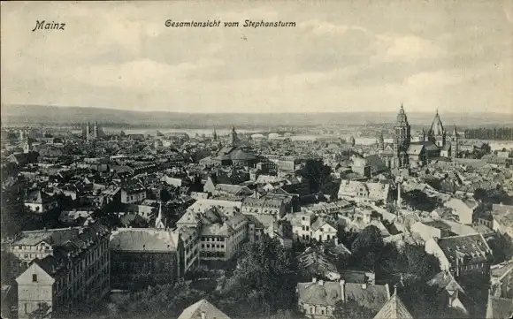 Ak Mainz am Rhein, Gesamtansicht von Stephansturm