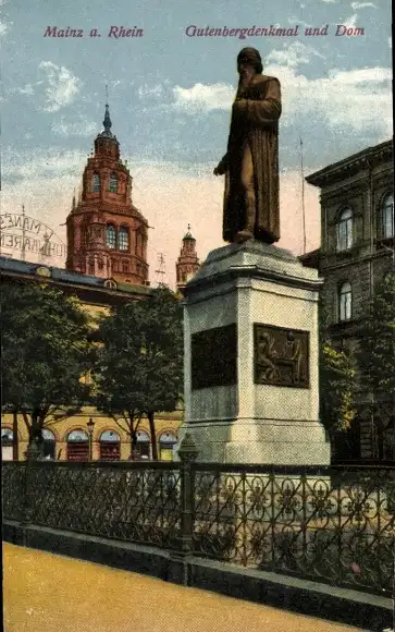 Ak Mainz am Rhein, Gutenbergdenkmal, Dom