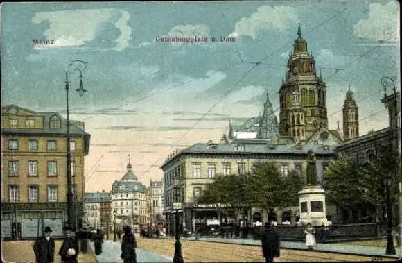 Ak Mainz am Rhein, Gutenbergplatz, Dom, Denkmal