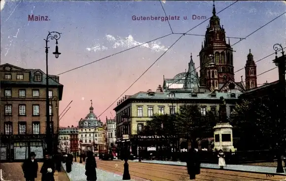Ak Mainz am Rhein, Gutenbergplatz, Dom, Denkmal