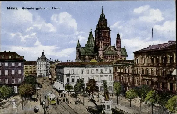 Ak Mainz am Rhein, Gutenbergplatz, Dom, Straßenbahn