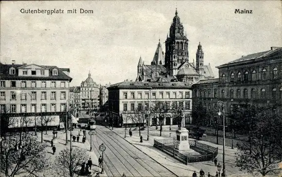Ak Mainz am Rhein, Gutenbergplatz mit Dom