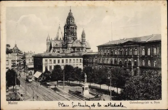 Ak Mainz am Rhein, Gutenbergplatz und Dom