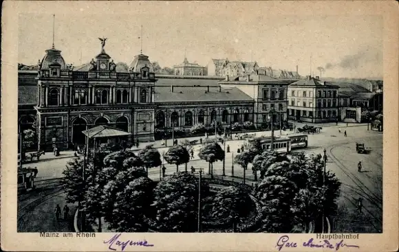 Ak Mainz am Rhein, Hauptbahnhof, Straßenbahn