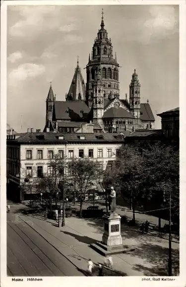 Ak Mainz am Rhein, Höfchen, Gutenberg-Denkmal, Dom