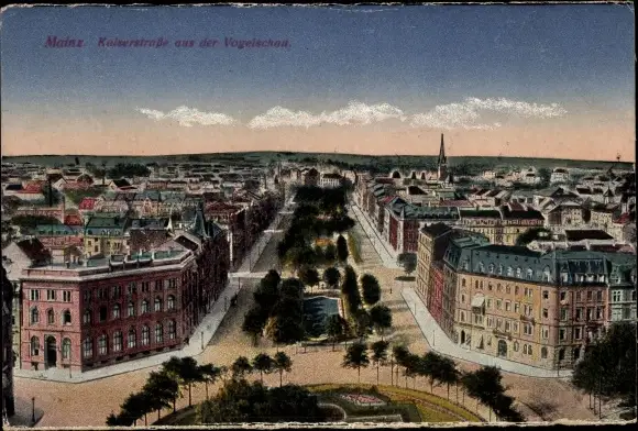 Ak Mainz am Rhein, Kaiserstraße aus der Vogelschau