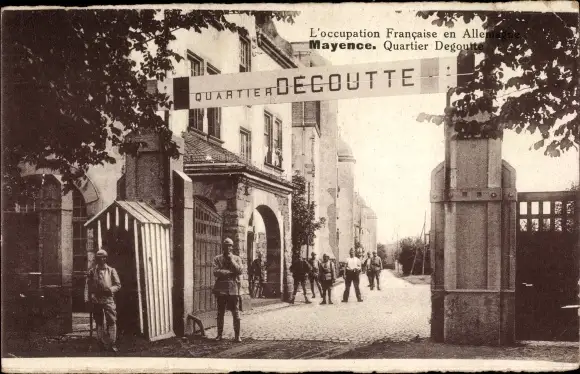 Ak Mainz am Rhein, Mayence, Kaserne Degoutte, Soldaten, Eingang