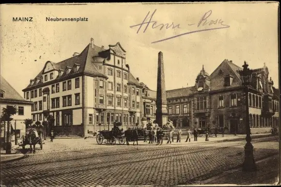 Ak Mainz am Rhein, Neubrunnenplatz, Obelisk