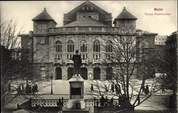 Ak Mainz am Rhein, Neues Stadttheater, Denkmal