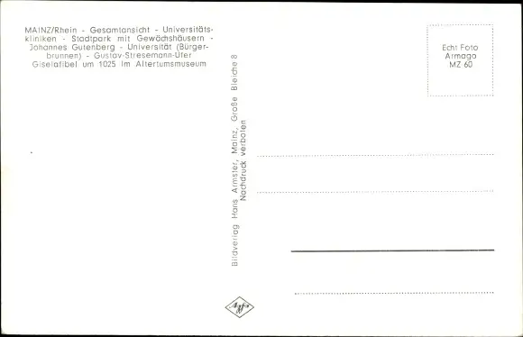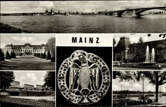 Ak Mainz am Rhein, Panorama, Universitätskliniken, Stadtpark mit Gewächshäusern, Universität