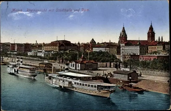Ak Mainz am Rhein, Personendampfer, Stadthalle, Dom