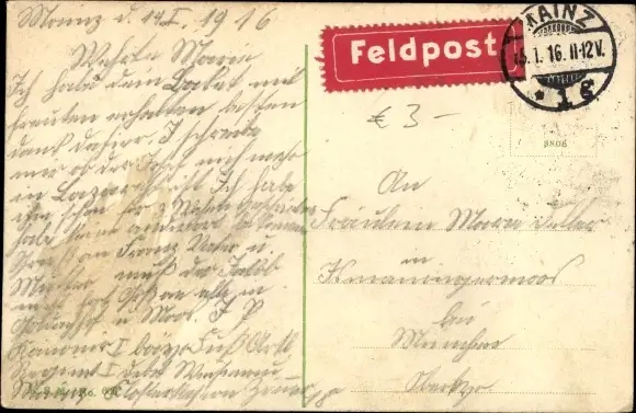 Zustand, siehe Scan, gelaufen, 1916 - ca 14 cm X 9 cm