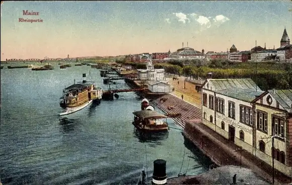 Ak Mainz am Rhein, Rhein, Schiffe, Ufer