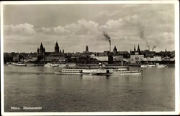 Ak Mainz am Rhein, Rheinansicht, Dampfer