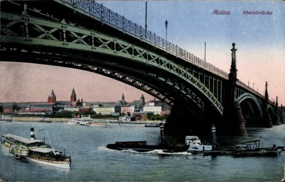 Ak Mainz am Rhein, Rheinbrücke, Schiffe