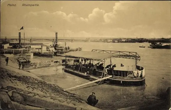 Ak Mainz am Rhein, Rheinpartie mit Schiffen